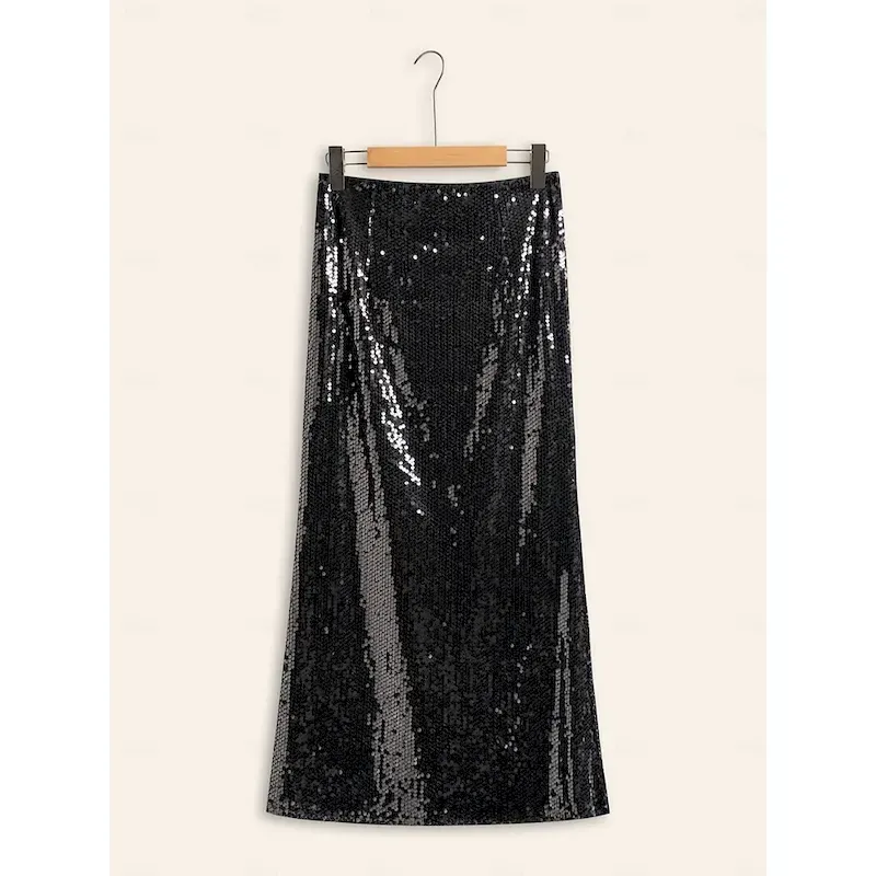 Sequin Glitter Vintage Lined Party Midi Skirt
