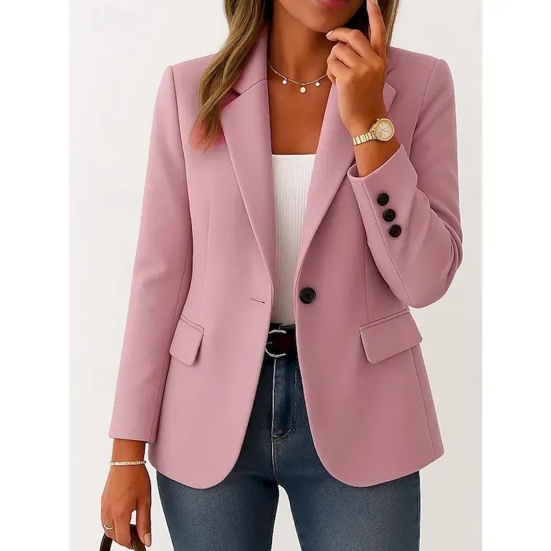 Women’s Blazer Comfortable Breathable Pocket Casual Plain Office Street Casual Daily Wear Single Breasted Regular Turndown Regular Fit Long Sleeve Outerwear Black Pink Khaki Summer Spring