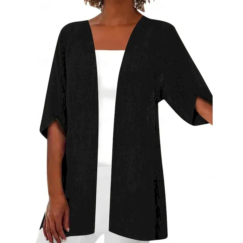 Women’s Casual Jacket Breathable Comfortable Oversized Casual Plain Casual Daily Wear Open Front Regular Collarless Regular Fit Half Sleeve Outerwear Black White Pink Summer