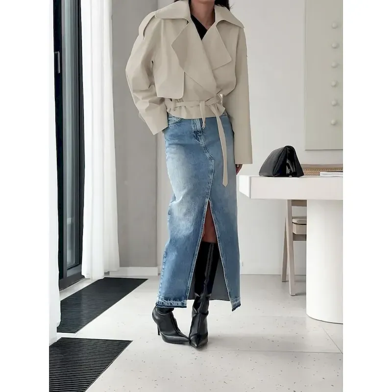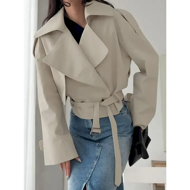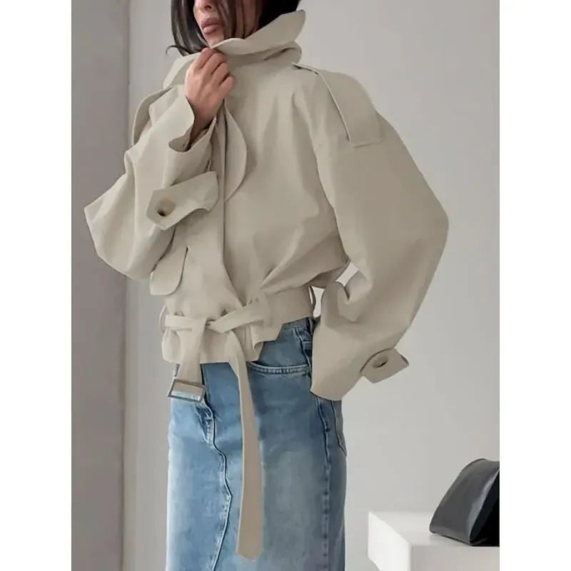 Women’s Casual Jacket Trench Coat Comfortable Breathable Lace up Casual Plain Vacation Street Casual Daily Wear Open Front Short Turndown Regular Fit Long Sleeve Outerwear Beige Gray Spring Fall