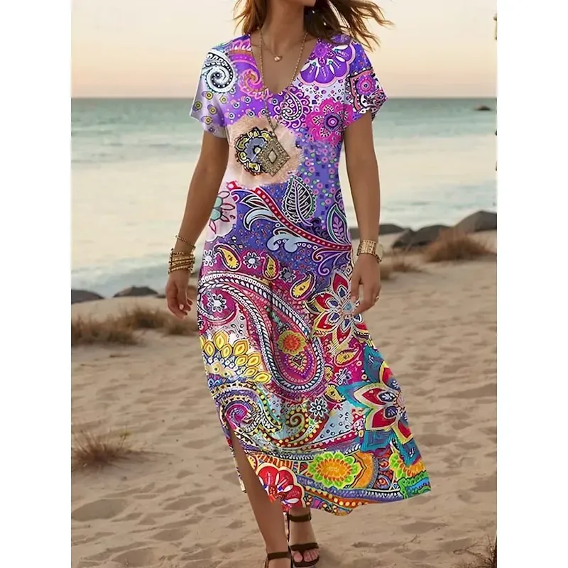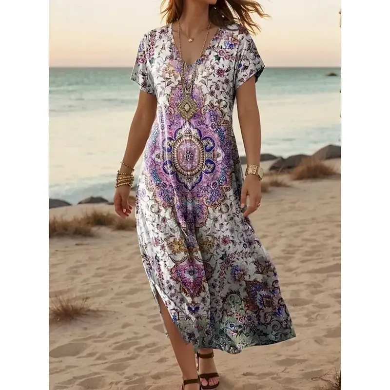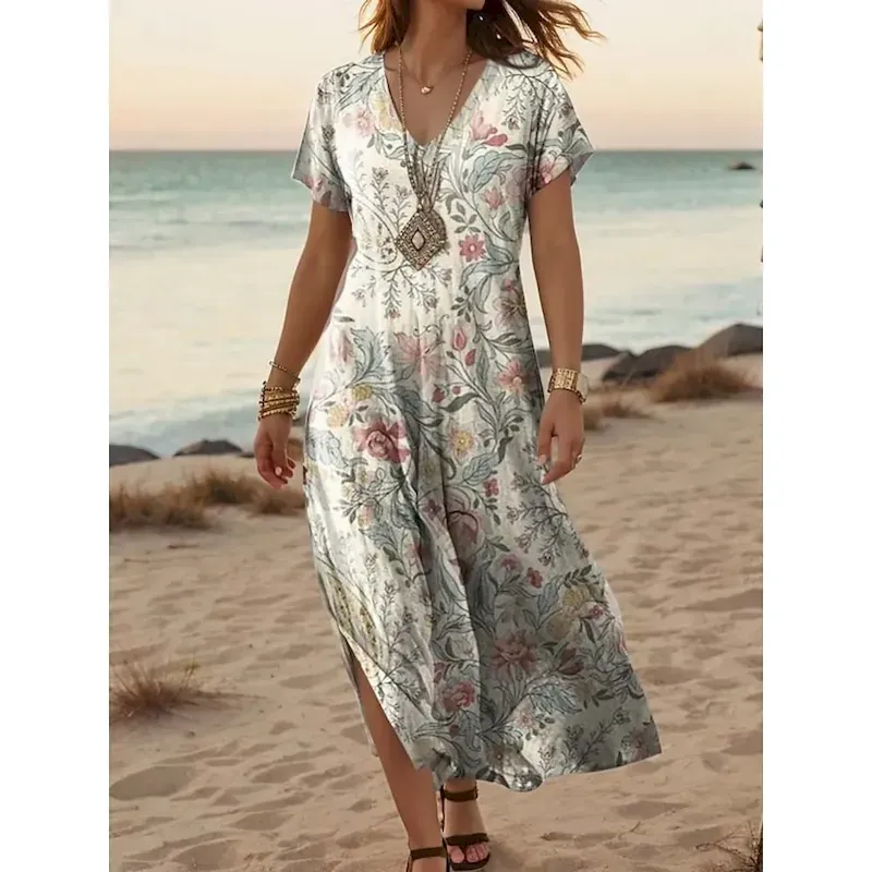 Women’s Maxi Dress Casual Dress A Line Dress Stylish Casual Vacation Daily Regular Fit Floral Short Sleeve V Neck Light Pink Light Purple Purple Beige Spring Fall