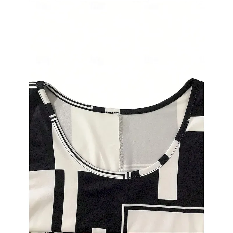 – Trendy mini dress- Comfortable loose fit- Stylish print design- Flattering U neck neckline