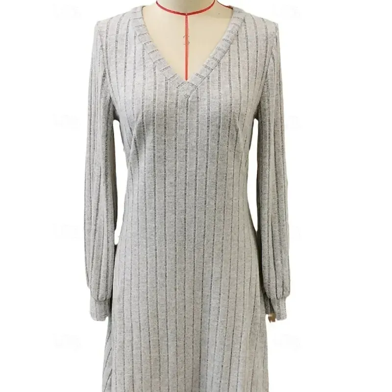 Women’s Mini Dress Casual Dress Elegant Fashion Modern Outdoor Daily Going out Regular Fit Plain Long Sleeve V Neck Grey Spring Autumn
