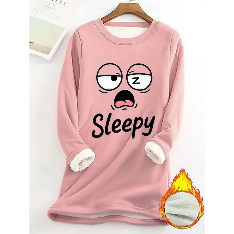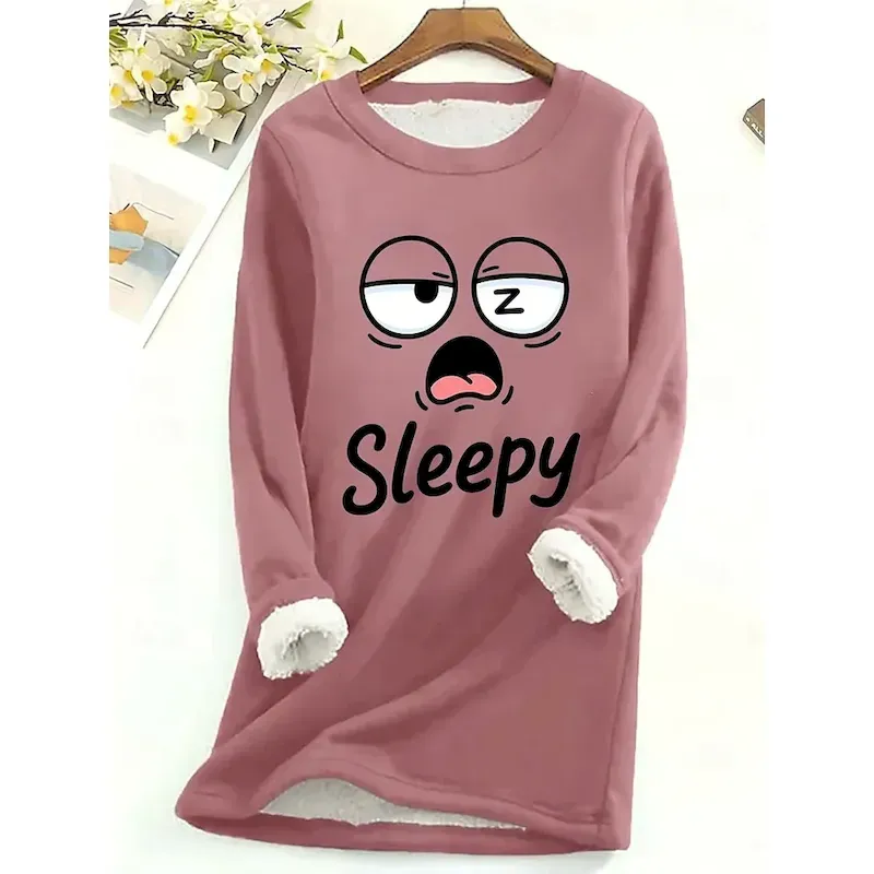 – Stay warm and stylish in this winter season with our polyester fleece lined top- Specifically designed for women- Long tops with a crew neck neckline for added comfort- Featuring a trendy letter print design- Keep cozy in a fleece lined top that’s perfect for staying warm in the cold weather