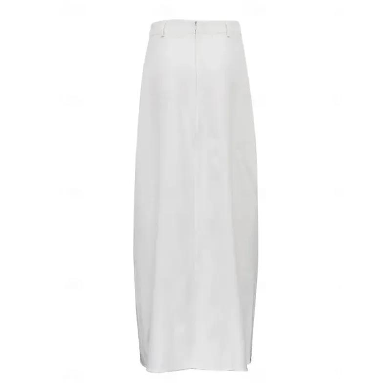 Women’s Skirt A Line Elegant Fashion Casual Maxi High Waist Skirts Plain Pocket Inelastic Street Daily White Spring Polyester